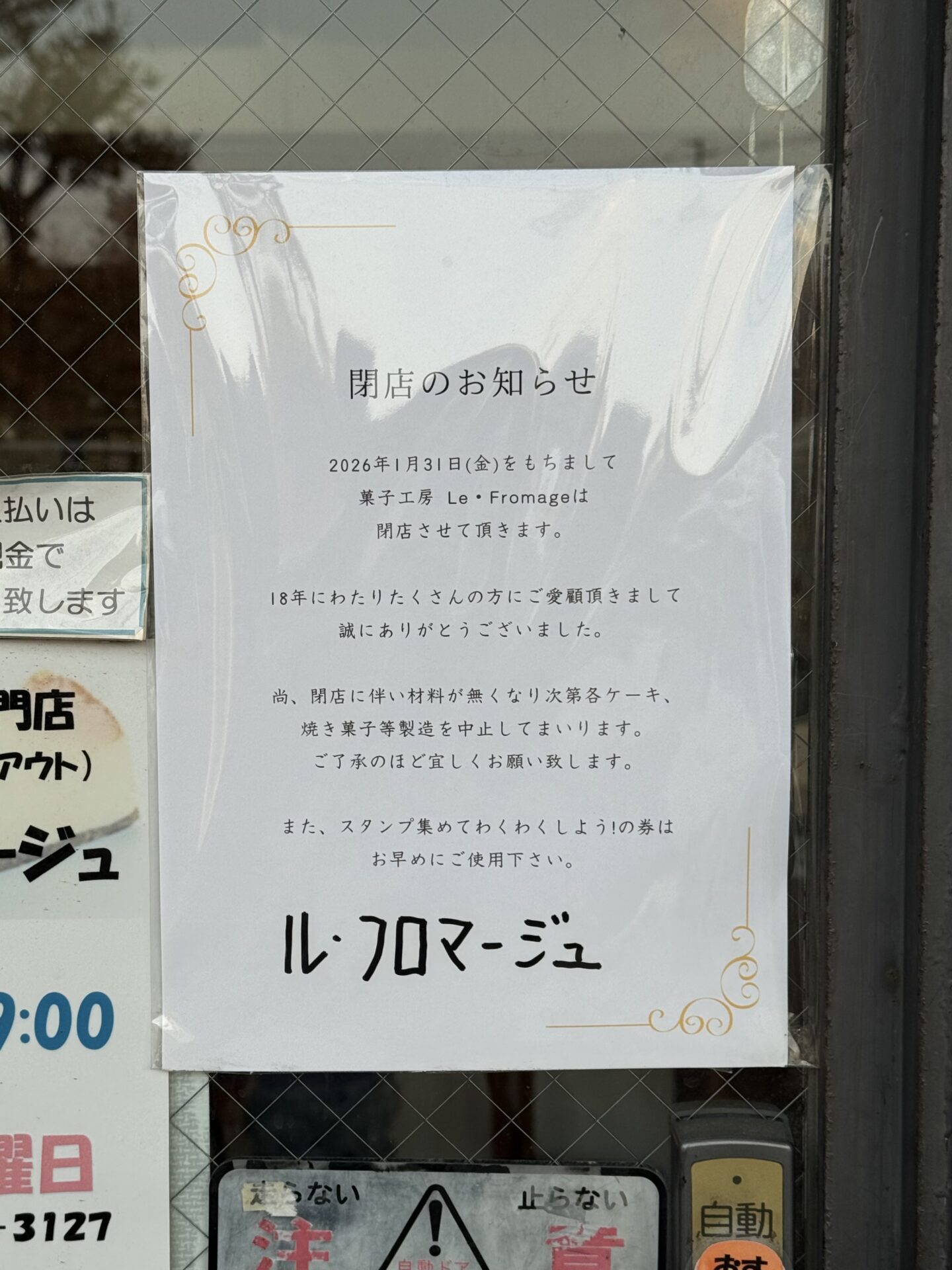 岡崎市不吹町にあるケーキ屋さん『Le ・Fromage』(ル・フロマージュ)が、2026年1月31日(金)をもって閉店されるとのことで、閉店前に伺わせていただきました。
