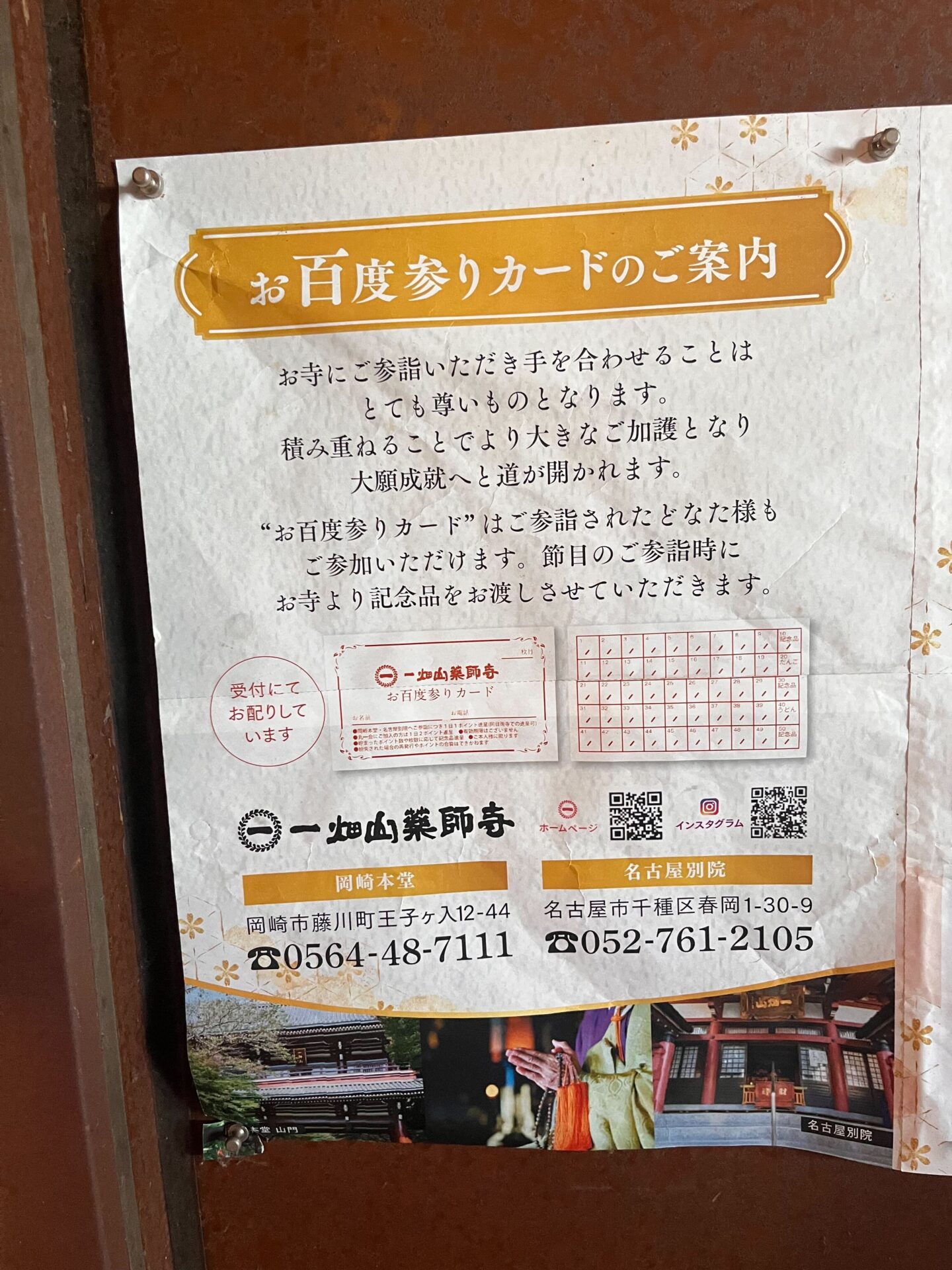 受付でいただけるこのカードなのですが、岡崎本堂、名古屋別院ともに参詣した際に押印してもらえ、節目には、記念品が頂けます。