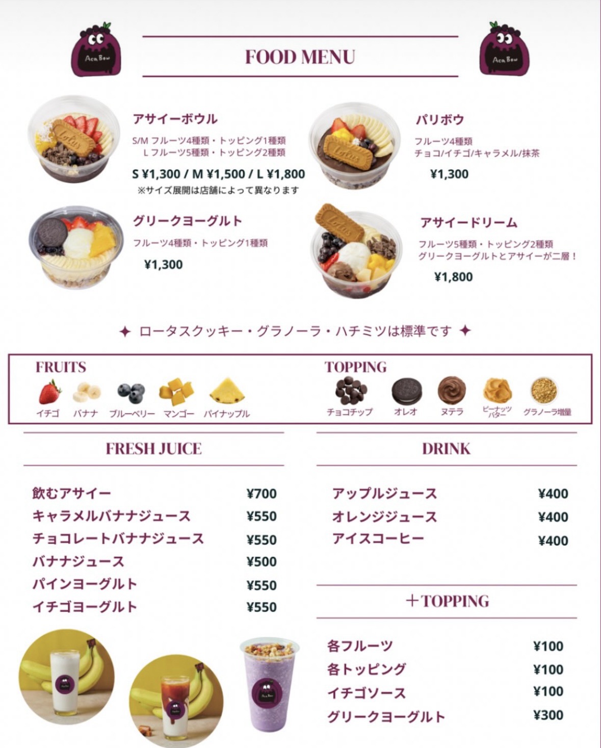 フルーツはいちご・バナナ・ブルーベリー・パイン・マンゴーの中から4種類選べて