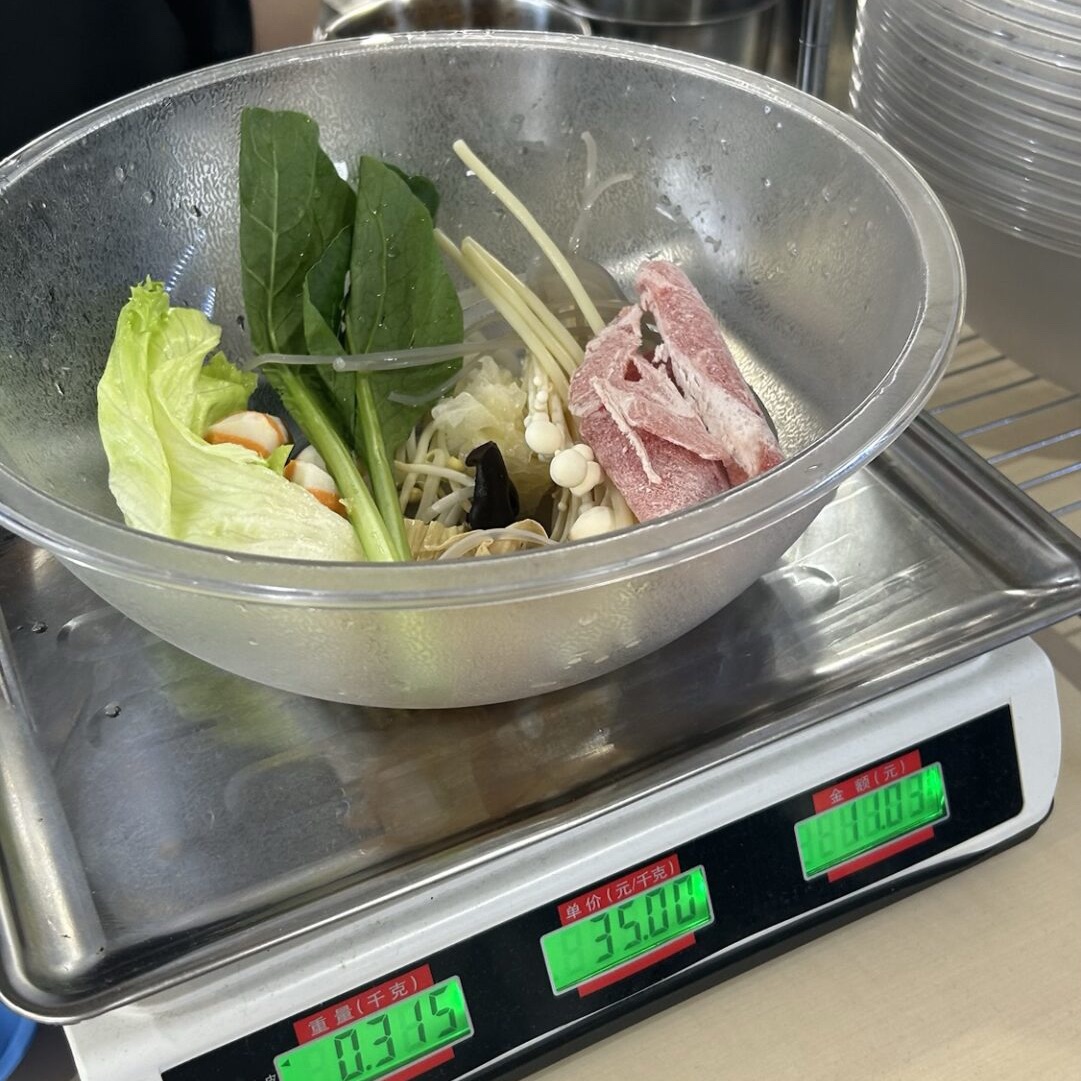 具材を入れ終わったら、重さを測って料金が決定します🙂↕️👌