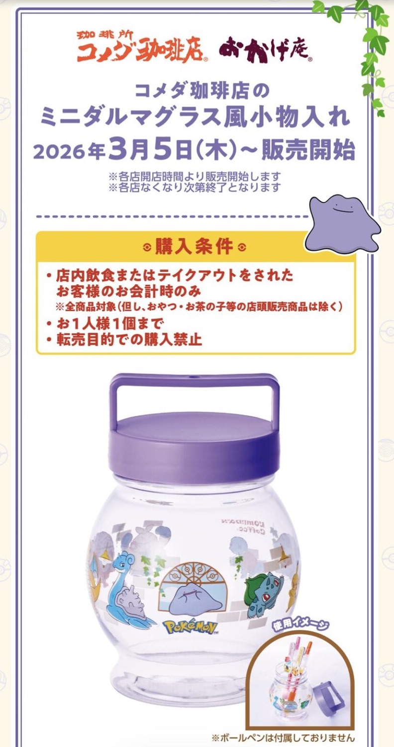 3月5日に発売するゲームに合わせてコメダ珈琲店とおかげ庵でポケモンのキャンペーンを行うようです‼️