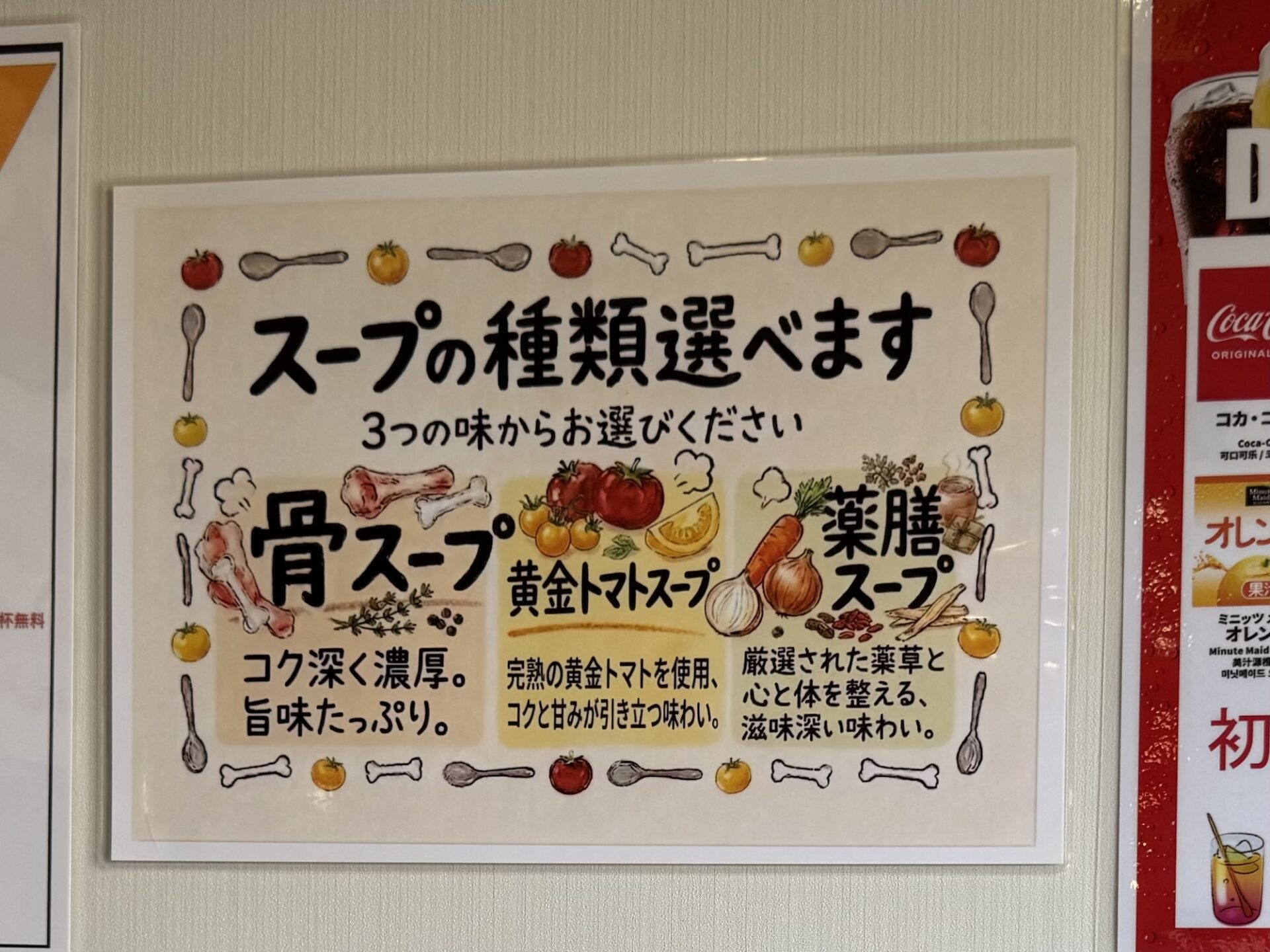 スープは「骨スープ」「黄金トマトスープ」「薬膳スープ」の3種類から選べ、わたしは薬膳スープを選択しました🥕