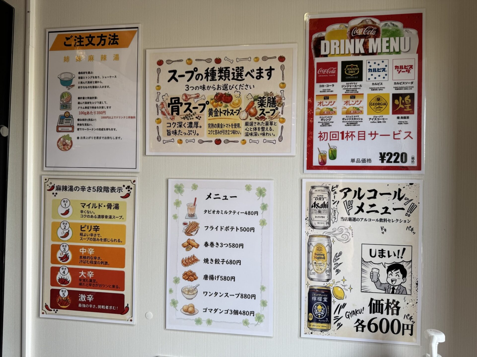 入ってすぐの壁面には、メニューや注文方法などの案内が掲示されています📍