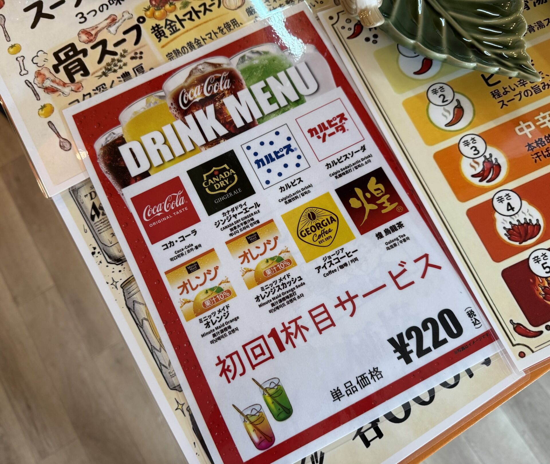 麻辣湯の注文後に、サービスのソフトドリンクも一緒に注文します🍹