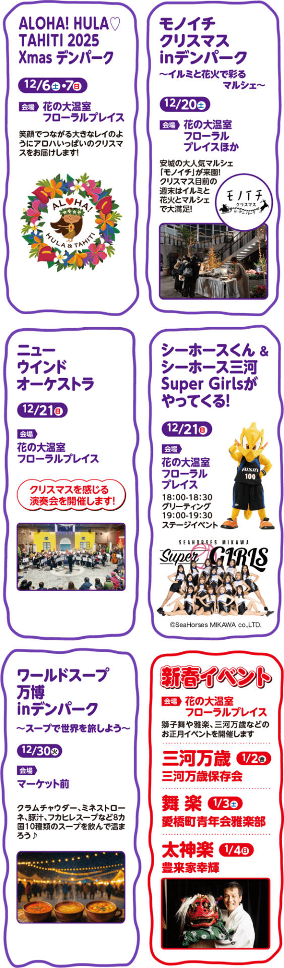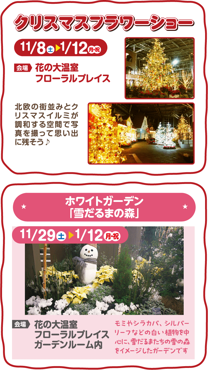 2025年11月21日〜2026年1月12日(点灯時間や休園日、マルシェの開催日時等は公式HP でご確認下さい)