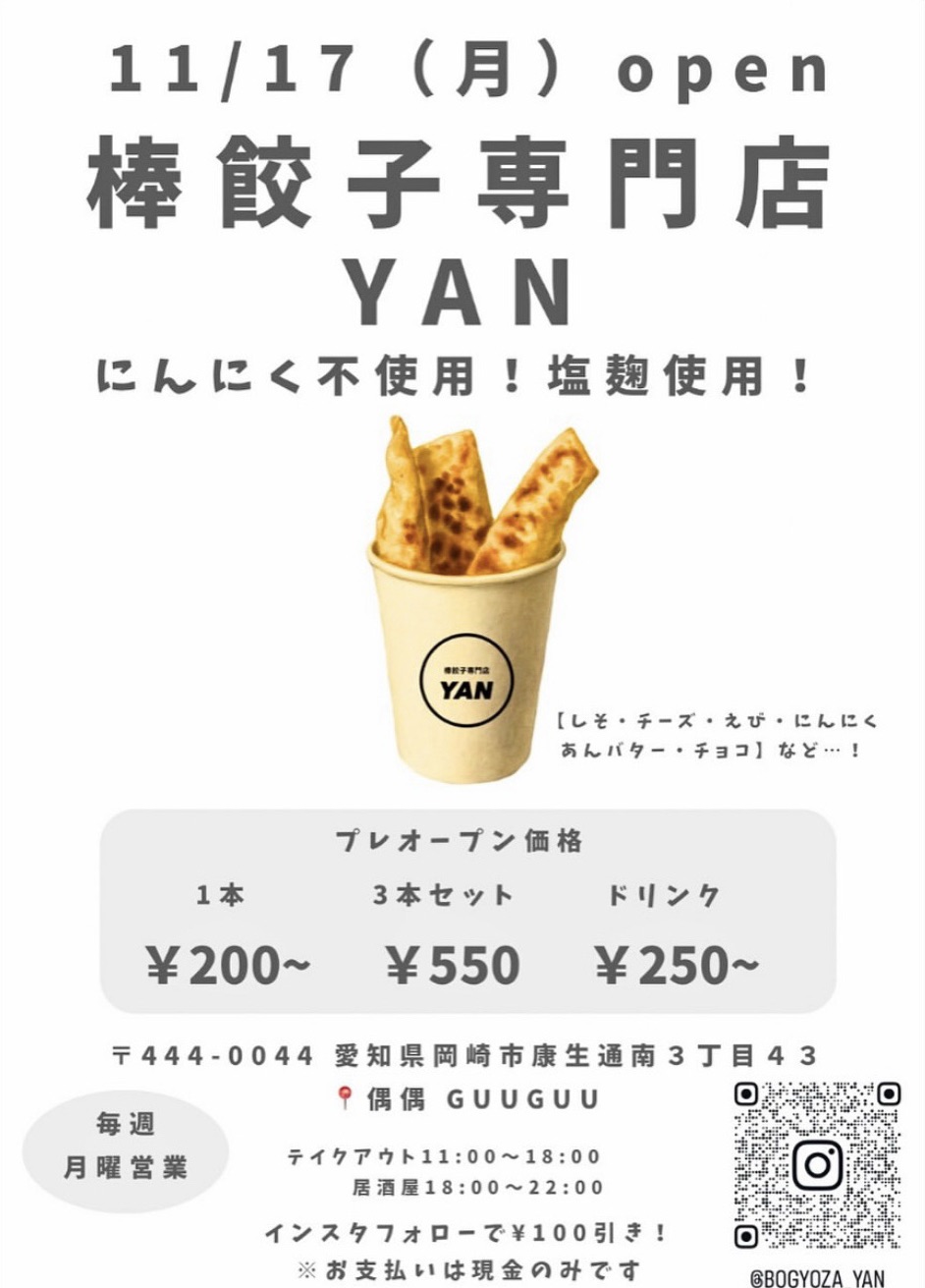 (画像出典:棒餃子専門店 YAN Instagram)