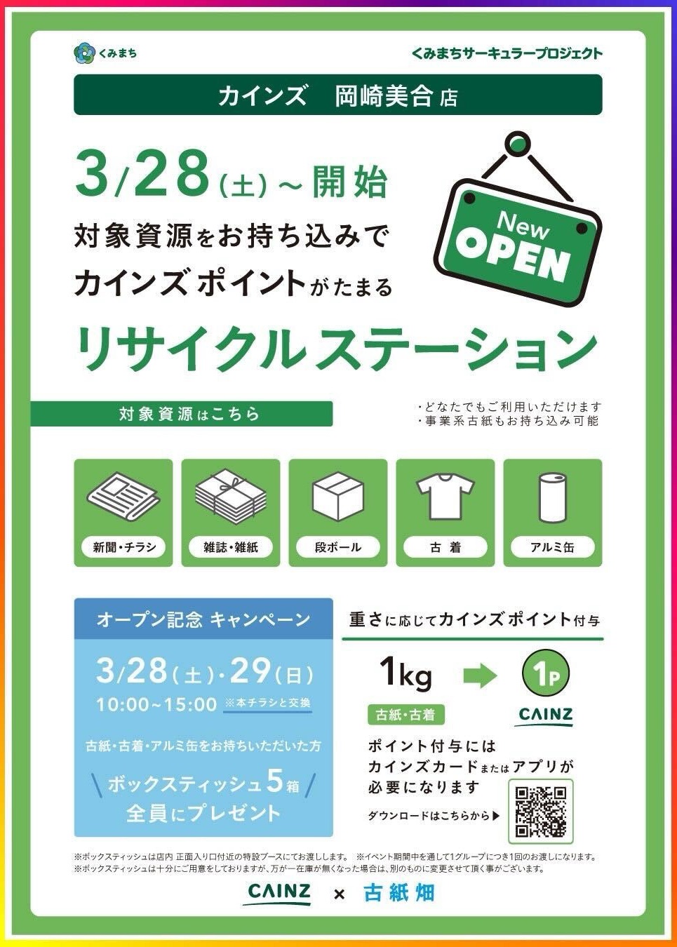 3月28日(土)から開始で、対象資源をお持ち込みでカインズポイントがたまります。