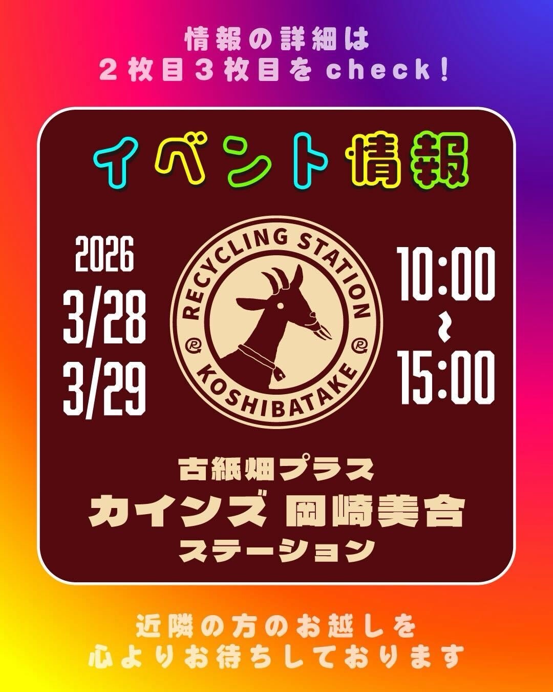 3月28日(土)、29日(日)のAM10:00〜PM15:00の開催期間中に古紙・古着・アルミ缶と一緒にチラシ(店舗内配布または新聞に折り込み予定)をお持ちいただくと、BOXティッシュ5箱を全員にプレゼント!!