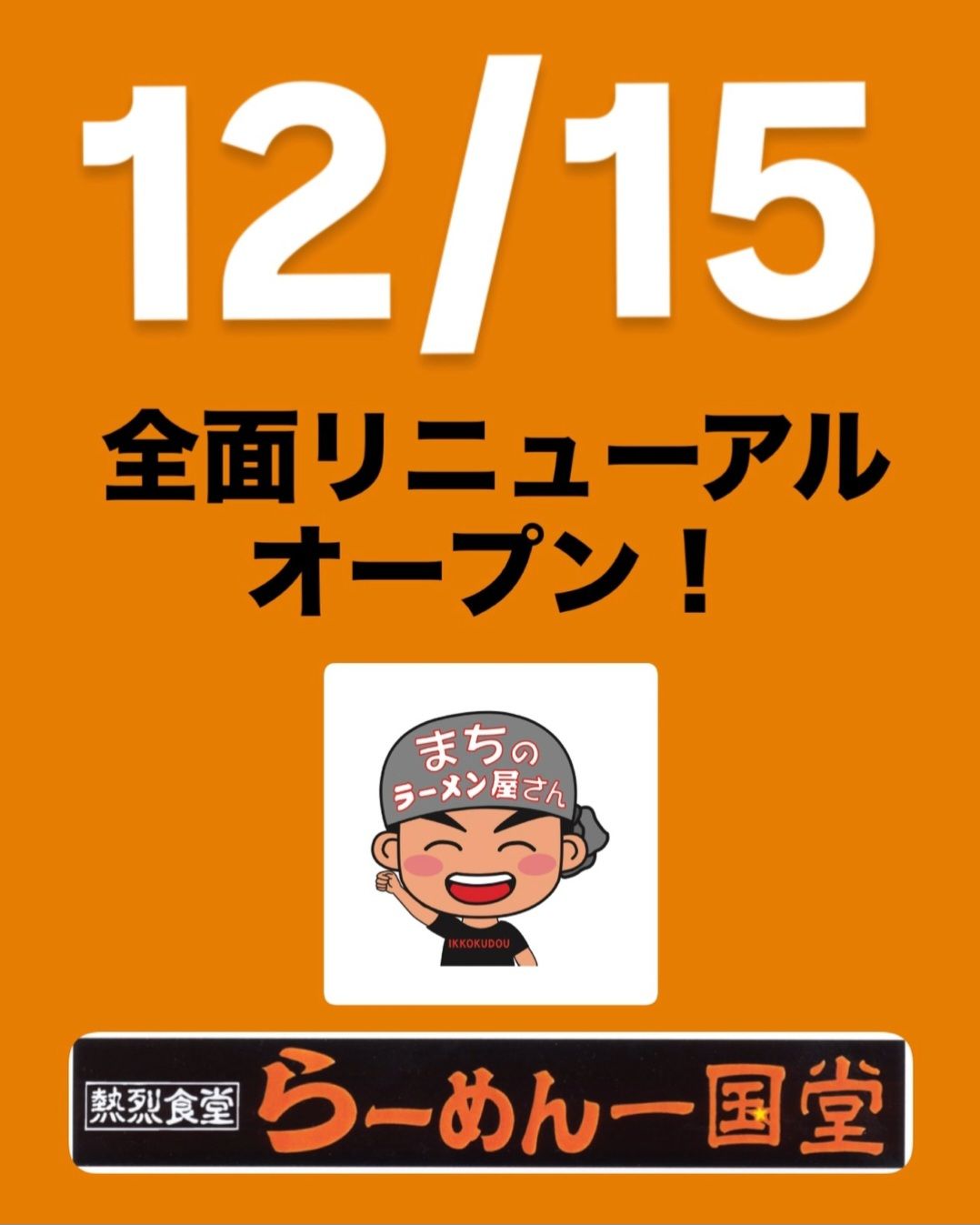 伊賀町にある「熱烈食堂らーめん一国堂 岡崎本店」 が 12月15日(月)リニューアルオープン することが決まりました🍜✨