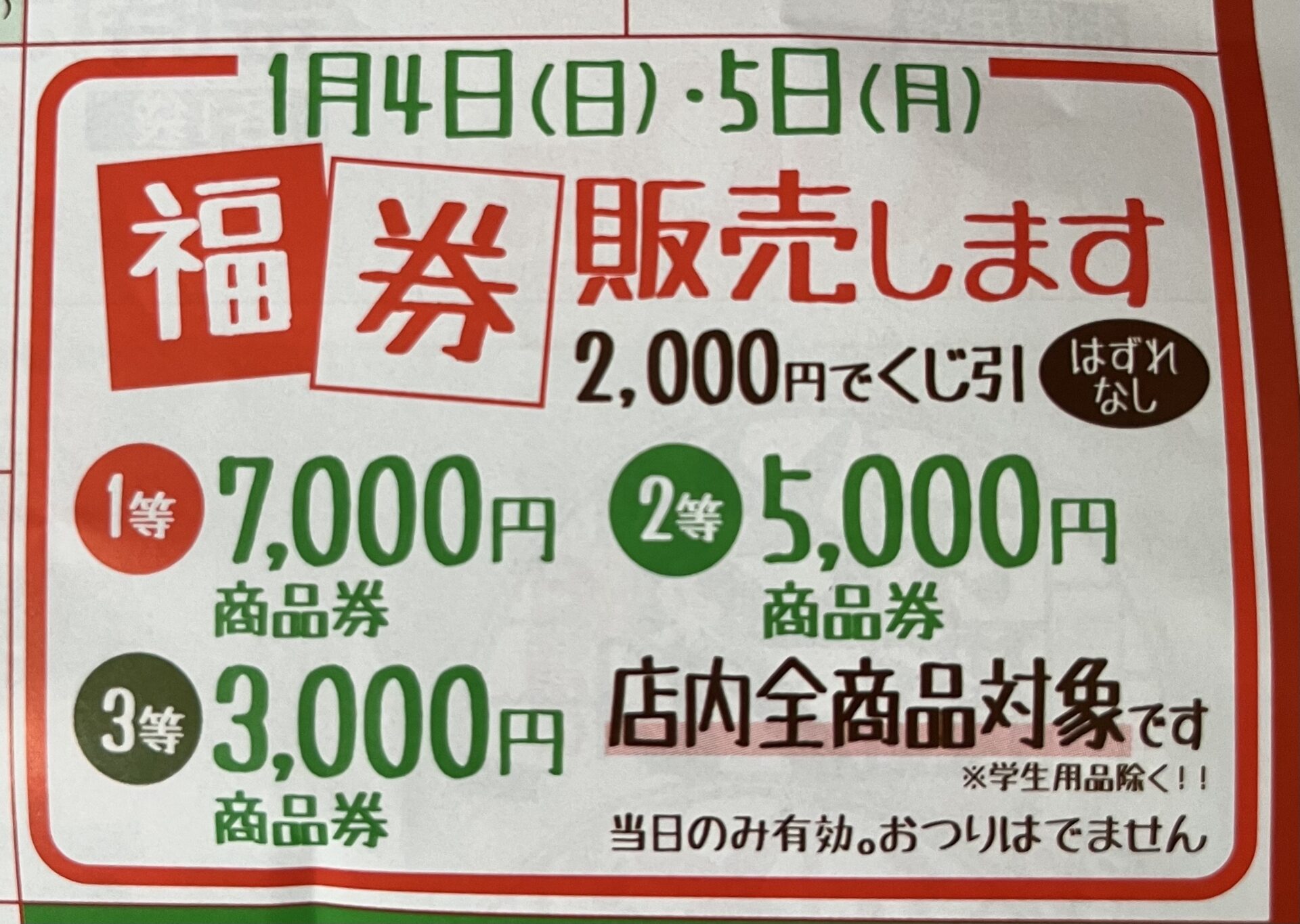 ヒラクで1月4日(日)、5日(月)に福券🎍が販売されます。