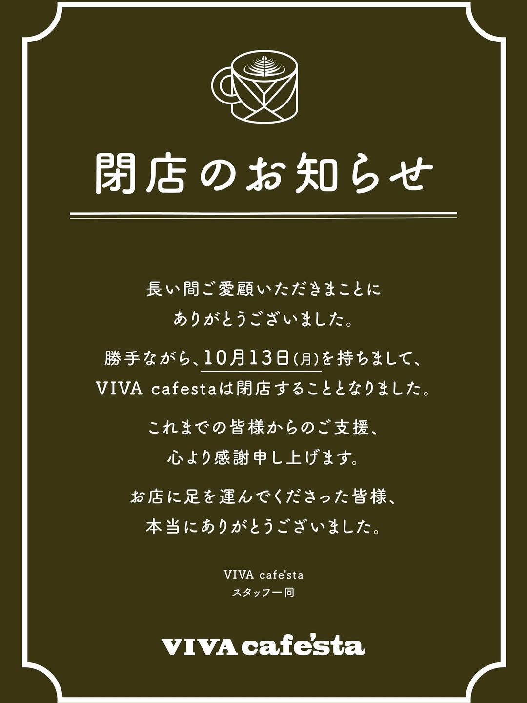 岡崎市上里にある人気のカフェ「VIVA Cafe’sta(ビバカフェスタ)」が、なんと10月13日(月)をもって閉店することになりました。