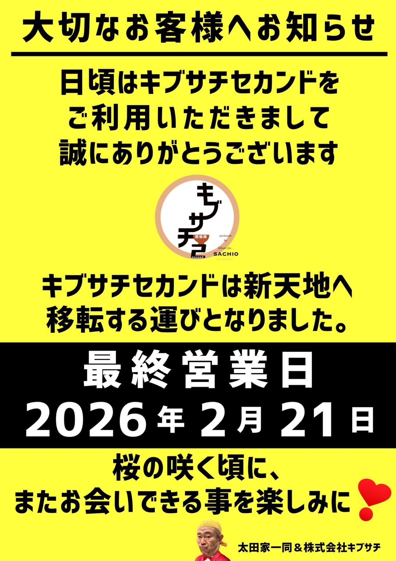 🐖現店舗最終営業日/2026年2月21日(土)