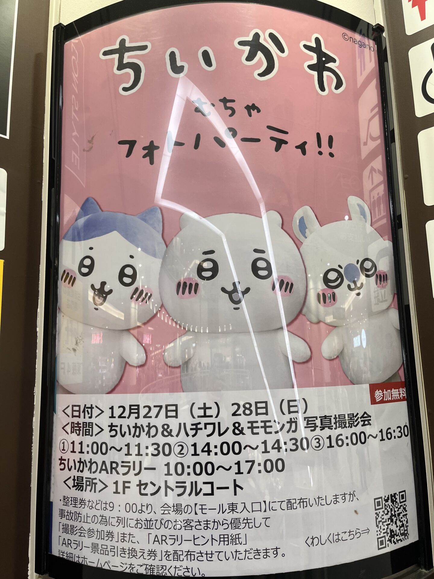 ちいかわ&ハチワレ&モモンガ写真撮影会」 や、スマホを手に会場を回遊する「ちいかわARラリー」を楽しむことができる「ちいかわ むちゃフォトパーティ!!」が12月27日(土)・28日(日)10:00~17:00に、イオンモール岡崎で開催されます。