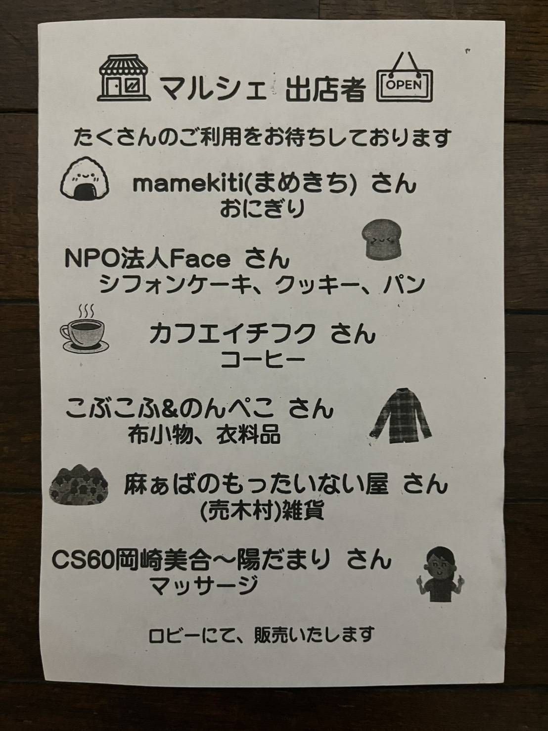 ※マルシェはロビーにて販売されます。